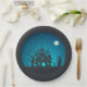 Scary and Fun Blue and Black Haunted House Paper Plate