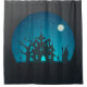 Scary and Fun Blue and Black Haunted House Shower Curtain
