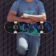 Scary Badass Neon Blue Skull Monogram Skateboard