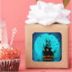 Scary Black & Blue Moon Happy Halloween Square Sticker. Customise to make it more personal by adding your own image and name or message.
