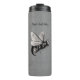 This thermal tumbler bottle to keep your drinks cold or hot has a white and black big scary bee illustration with big eyes and skull with crossbones on its wings on a grey background. Customise your text with the template.