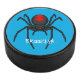 Scary black widow spider cartoon illustration hockey puck