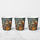 Halloween paper cups with creepy, strange kids. One looks like a porcelain doll with cracks, scars and scary eyes, there is a skeleton beast and a weird boy who also looks like a creepy porcelain doll, with spikes, scars, and bulging frightening eyes. Are they in costume, or beings from a dark evil castle?