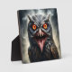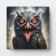 Pictured is a scary fanged vampire owl surrounded by smoke