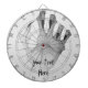 These monstrous and gruesome hands on this quality dart board look quite scary. The original image of these two vein covered hands with gnarled fingers is a graphite drawing. The long and pointed black finger nails give this horror image some extra nightmarish scariness. This unique dart board will defiantly turn heads, it’s a great gift for anyone who likes a bit of horror in their lives. This is a customisable dartboard, you can personalise it with your own text.