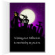 The Grim Reaper in a grave yard with a full moon and purple sky background. Very fun and scary design for your Halloween greeting card design.
