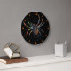 Large Round Wall Art Clock and home furnishing decor accessory with Scary Halloween Metallic Spider And Web artwork design image by TheFabricSeal at Zazzle.com. For this cool looking shiny metal finish spider and webbing, Every Day Is Halloween. Trick Or Treating and waiting patiently for their next prey and sweet tasting meal to get stuck in the strong webbing. Yum Yum.