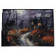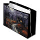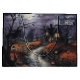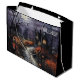 Halloween gift bag featuring a watercolor eerie Halloween scene with a haunted house and bats swirling above moonlit autumn landscape. Happy Halloween greeting in the upper right. Additional sizes available. Image may need to be adjusted for varying sizes.