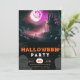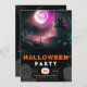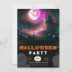 Set the scene for a spooktacular Halloween bash with this bewitching party invitation. The top half features a hauntingly atmospheric Halloween scene, showcasing gnarled, creepy trees, grinning jack-o'-lanterns, and a dramatic gothic full moon. The rich, dark hues of the night sky enhance the eerie vibe, making it a perfect prelude to your Halloween festivities.