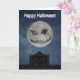 Scary Halloween illustration featuring a spooky landscape by night with the full moon having a jack-o-lantern face over a creepy dark old house.