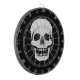 This design is based on a pirate flag that features an image of a laughing skull, symbolising mortality. Edward Teach, better known as Blackbeard, is said to have flown a black flag with a skull in the middle.