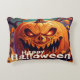 Scary Looking Orange Pumpkin with Face, Halloween Decorative Cushion
