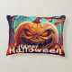 Scary Looking Orange Pumpkin with Face, Halloween Decorative Cushion