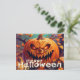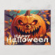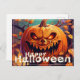 Scary Looking Orange Pumpkin with Face, Halloween Holiday Postcard