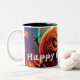 Scary Looking Orange Pumpkin with Face, Halloween Two-Tone Coffee Mug
