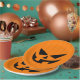 These modern halloween party paper plates feature an orange striped background and a scary jack o'lantern face. You can also customise this design by adding your own text. See our Halloween collection for more Halloween items!
