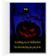 Very scary looking pumpkin with an owl in a tree above. A moody deep blue night time sky background. Very fun and scary design for your Halloween greeting card.
