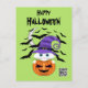 Halloween Scary Pumpkin with a White Kitty and Witches Hat Postcard