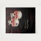 Black floral dark moody gothic skull red roses - scary and spooky Halloween Wedding tapestry .