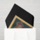 Scary vintage Halloween witch in pointed black hat, red dress and black cape flying on her broomstick with black cat on moonlit night with decorative "Hallowe'en" text. Background colour is editable. Suitable for decoupage or Fall crafting projects.