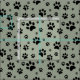 Scattered Black Paw Prints on Sage Green Fabric
