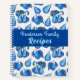 Personalised Recipe book in a print of scattered pears and leaves, adapted from vintage botanical art, digitally enhanced and coloured, in deep indigo and shades of denim blue on white