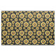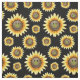 A fabric featuring a scattered group of smiling sunflowers. Change the background colours by hitting the customise button.