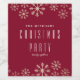 A festive wine label design by Stacey Meacham featuring scattered metallic snowflakes and customisable event details. Make your party extra special with adding your own labels to wine and other beverages. Great for both personal and business holiday parties.