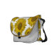Carry your stuff in style with the pretty Scattered Sunflowers Rickshaw Messenger Bag! Perfect for work, school or personal use, this roomy bag will carry just about everything! This flowery all purpose tote makes a great birthday, graduation or holiday gift for a student or professional. The beautiful and durable over the shoulder custom floral messenger bag features yellow sunflower blossom scattered about with a white background.