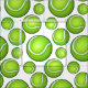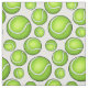 A white fabric featuring a smattering of tennis balls of various sizes for your creative needs.