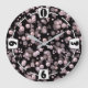 Scatterings of pink and white pearls on black velv large clock