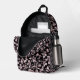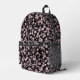 Scatterings of pink and white pearls on black velv printed backpack