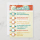 A very fun and vibrant scavenger hunt invitation featuring the words Scavenger Hunt in bold letters, with a bursting background. There is a cool list that sorts out the details of the invitation. Very fun to set the theme of the party.
