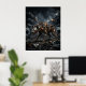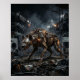 Fierce and cunning, this scavenger hyena design features patchwork armor plating, welded scrap panels, exposed gears, glowing eyes, and a menacing grin crafted from salvaged metal. Moving through a junkyard wasteland of broken vehicles, twisted beams, sparks, smoke, and moonlit shadows, the hyena radiates survival instinct and raw attitude. Perfect for gaming rooms, studios, garages, and modern interiors. A bold choice for fans of post-apocalyptic style, predators, and rugged mechanical animal art.
