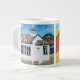 This jumbo sized mug features two folk art paintings by Cathy Olliffe-Webster. One is a painting of a church in Dorothy, AB - a ghost town! The other painting features a trio of the small red sheds which can be seen in various states of repair at almost every rural property in Alberta. Both paintings are by Cathy Olliffe-Webster.
