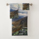 Towel set with a beautiful nature photograph. Featuring snow capped alpine mountains and tranquil ponds nestled inside the valley of these majestic mountains.