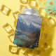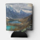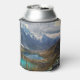 Can cooler with a beautiful nature photograph. Featuring snow capped alpine mountains and tranquil ponds nestled inside the valley of these majestic mountains.