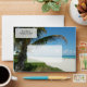 Get away with this relaxing vacation travel image of a white sand beach with green palm tree and clear blue water and sky. A lovely coastal scene is a great way to take a mental break from the day to day routine. All Designs Copyright © 2012 www.CuteComfy.com