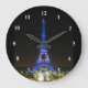 A scenic view from Paris, France. The famous landmark, the eiffel tower, seen at night lit up by bright blue lights.