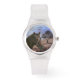 The original horse portrait on this unique, customisable wrist watch, is an original painting of a beautiful chestnut mare, The chestnut horse is a great symbol for all things to do with the horses, this watch will look good on any wrist, male or female and will make a unique gift for people working with animals, whether it be a horse vet or all animal veterinary treatment, blacksmith farrier, training or working with horse rescue. The horse portrait is set against an original stylised watercolor landscape image. This is a customisable watch, you can personalise it with your own text.