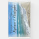 Scenic hearts in the sand beach image, for visions of relaxation in paradise, celebrate your beach wedding with this lovely design. Two interlocking hearts drawn in the beach sand on the ocean shore, perfect for a destination, island, tropical paradise coastal nautical event. Blue turquoise and tan sand with white waves crashing on the shore.