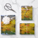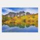 Wrapping paper sheets with a beautiful country photograph. Stone mountains with an autumn forest in bright colours. A quiet lake reflects the mountains, trees and grasses.