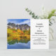 A wedding invitation with a beautiful country photograph. Stone mountains with an autumn forest in bright colours. A quiet lake reflects the mountains, trees and grasses.