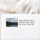 Return address labels for your mailing envelopes featuring a scenic, photographic image of snow capped Mount Hood, Oregon, and a peaceful forest lake in the Pacific Northwest. Personalise your labels by editing text and replacing with your own name and address.