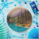 Paper plates with a scenic northern landscape photograph as the backdrop. A turquoise coloured lake with a forest of pine trees in the background and a foggy misty sky giving it a magical mystical quality.