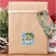 Candle, soap or kitchen product stickers with a beautiful and tranquil photograph of 2 palm trees under a bright blue sky.