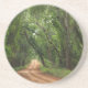 Red clay plantation country road lined with a canopy of trees and Spanish moss including live oaks in the south Georgia, north Florida area during late spring or early summer time.