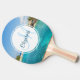 Ping pong padle with a beautiful photo featuring a tropical beach resort.