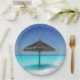 Scenic Tropical Beach with Thatched Umbrella Paper Plate