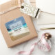 Candle, soap or kitchen product stickers with a beautiful photograph featuring a turquoise blue sea and a sandy beach with waves of foamy surf.